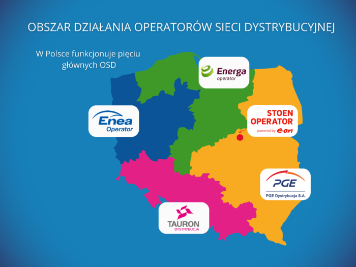 - Dystrybutorzy (Operatorzy Systemu Dystrybucyjnego, skr. OSD). To firmy, które często są związane z wielką piątką dostawców pradu (ENEA, PGE, Energa, Tauron, EOn). Dostarczają prąd bezpośrednio do domów i firm za pomocą linii średniego i niskiego napięcia. To właśnie do nich nalezy usuwanie awarii czy utrzymanianie liczników. Mowa o: Tauron Dystrybucja, PGE Dystrybucja, Enea Operator, Energa Operator, Stoen Operator.