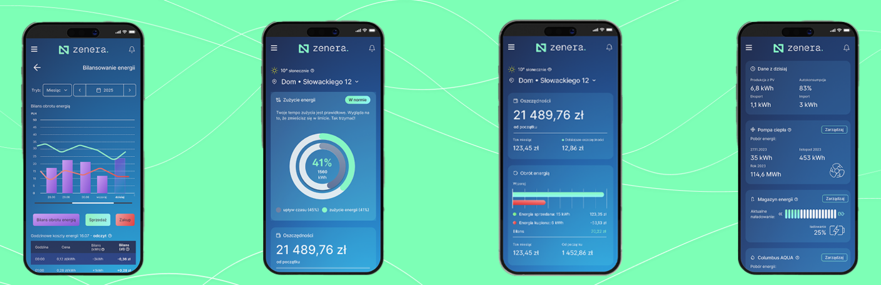 Zenera to bardzo nowoczesny system zarządzania energią powstały w partnerstwie z Columbus Energy. Zenera łączy instalację fotowoltaiczną, magazyn energii oraz inteligentne zarządzanie zużyciem prądu w jeden spójny ekosystem. Dzięki wykorzystaniu algorytmów sztucznej inteligencji system Zenera na bieżąco analizuje produkcję energii, zapotrzebowanie domu oraz prognozy pogody, a następnie automatycznie decyduje, kiedy zużyć energię, kiedy ją zmagazynować, a kiedy oddać lub pobrać z sieci.